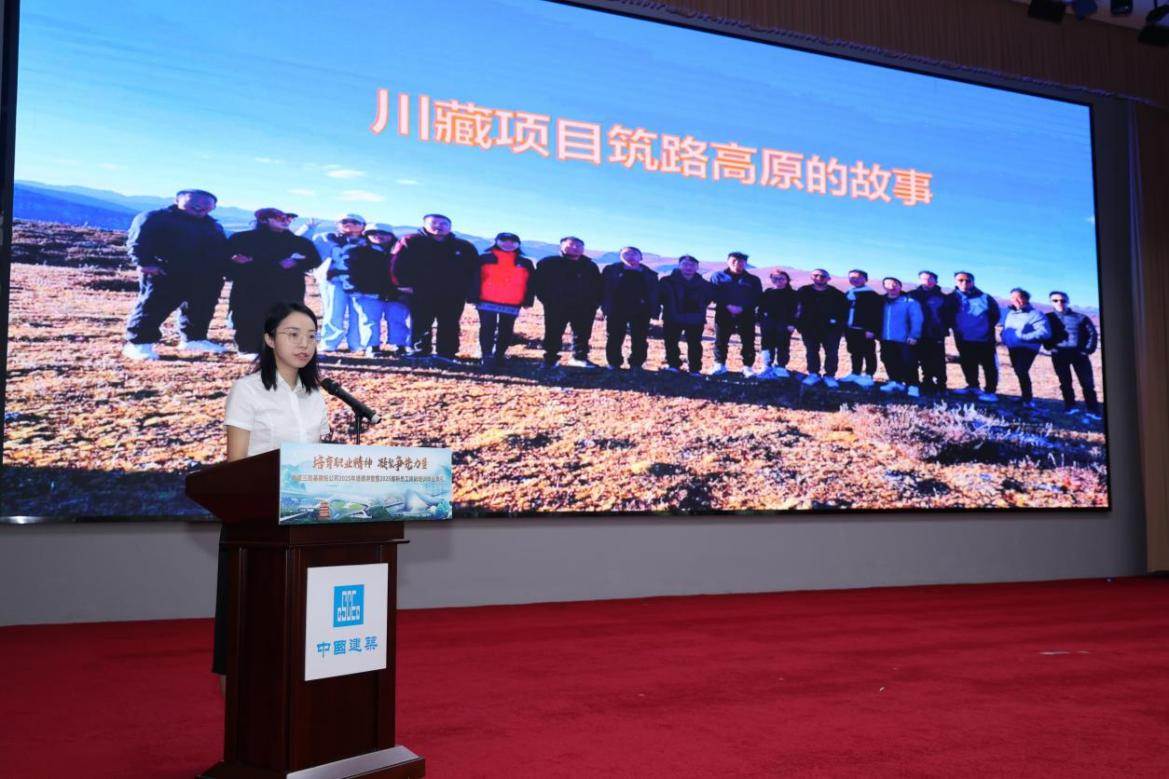 中建三局高原项目建设者代表闵博,以“筑路世界屋脊”为主题,深情讲述了项目团队在海拔4000多米的环境中,顶风雪、斗严寒,以坚定的信念和不屈的精神,高标准完成一项项艰巨任务,赢得各方高度肯定。