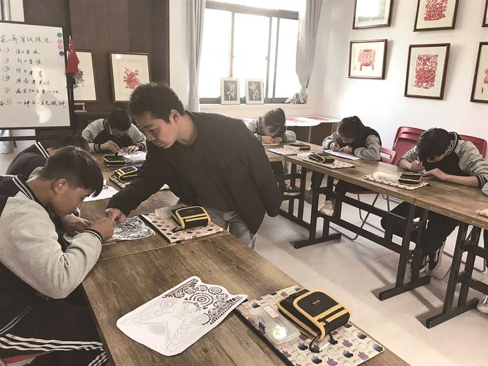 课堂上,葛海不仅系统讲解理论知识,还因材施教设计出阶梯式课程。低龄学生从十二生肖入门,高龄学生挑战京剧脸谱技法。他带领孩子们合作完成复杂作品,从史料中挖掘老纹样,践行“把古物用活”理念。为降低学习门槛,他将三折团花变为六折,避开镂空难点,让孩子们在DIY中收获成就感。