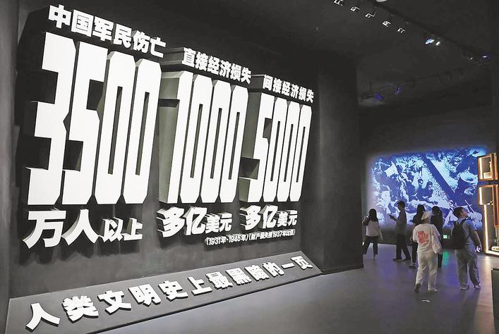 7月8日,参观者在中国人民抗日战争纪念馆参观《为了民族解放与世界和平》主题展览。(新华社记者 张晨霖 摄)
