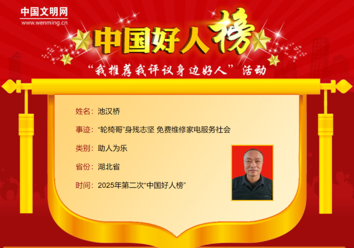 池汉桥:“轮椅哥”身残志坚 免费维修家电服务社会(孝感市)