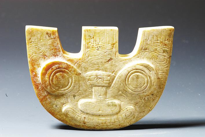 新石器时代 良渚文化 兽面纹玉三叉形器 浙江省博物馆藏