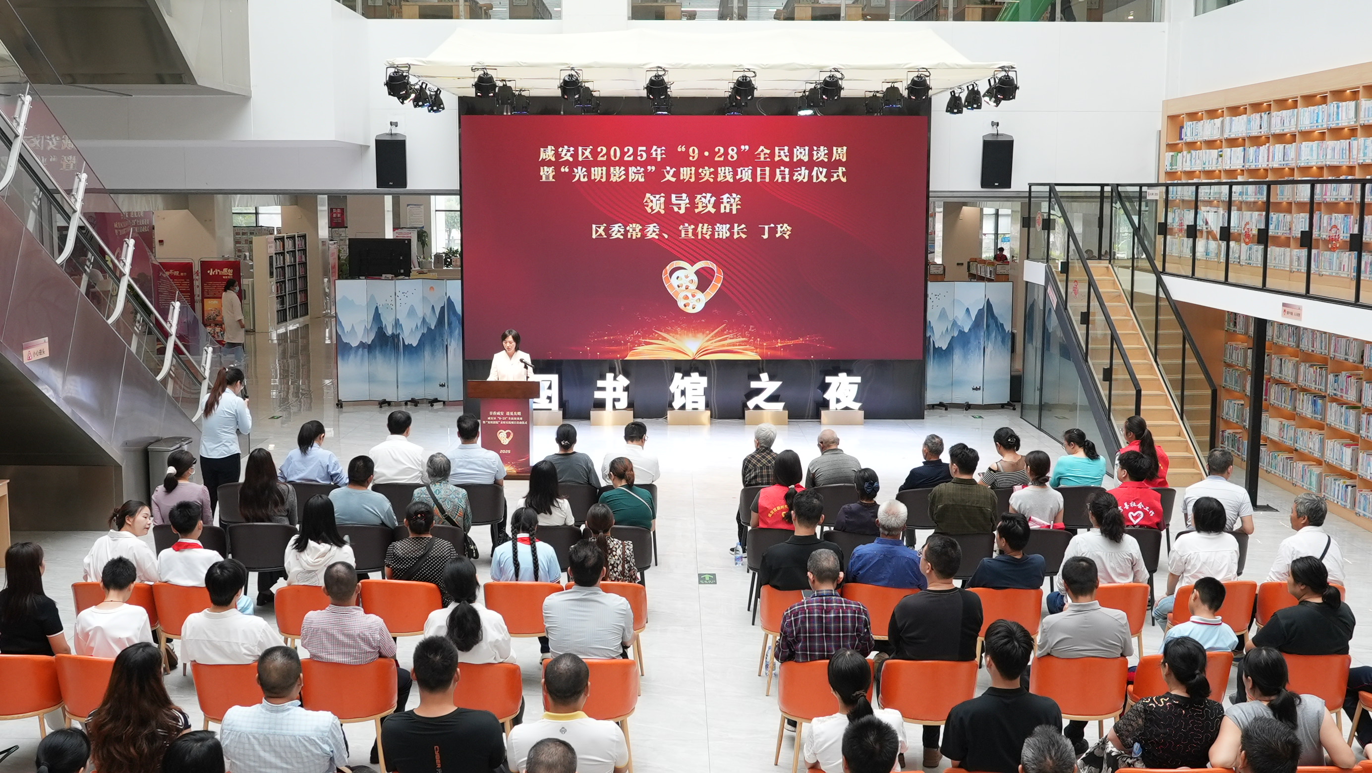 9月28日,咸宁市咸安区2025年“9·28”全民阅读周暨“光明影院”文明实践项目启动仪式在区图书馆举行,活动以“书香咸安 遇见光明”为主题,营造全民阅读浓厚氛围,传递城市人文关怀。