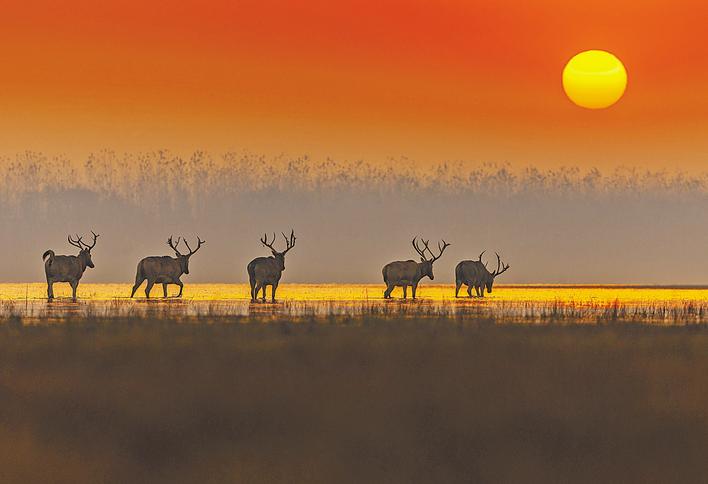 麋鹿回归中国40年来,种群数量突破1.5万头,分布于27个省份100多个栖息地,野生种群不断壮大。(湖北日报记者万雷萌、彭磊、通讯员杨光明)
