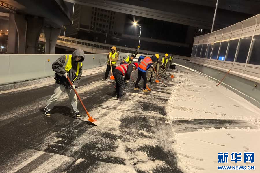 雪势逐渐加大,能见度不断降低,队员们顶风冒雪坚守岗位,轮换作业不松懈。在高新大道关山大道站,队员们重点清理站台出入口及周边路面,铺设防滑砂砾,为夜间出行市民筑牢安全屏障;在隧道出入口,大家加密融雪剂撒布频次,安排专人值守巡查,实时监测路面结冰情况。寒风吹透衣物,雪花落在肩头、睫毛上凝结成霜,队员们搓搓手、哈口气,便立刻投入战斗,汗水与雪水在身上交织成痕。从暮色四合到深夜时分,队员们连续奋战5个小时,清理积雪结冰路段5公里,完成高新大道主干道及重点点位的除冰保通工作。(新华网客户端 钱程、芦昊、薛瑞军)