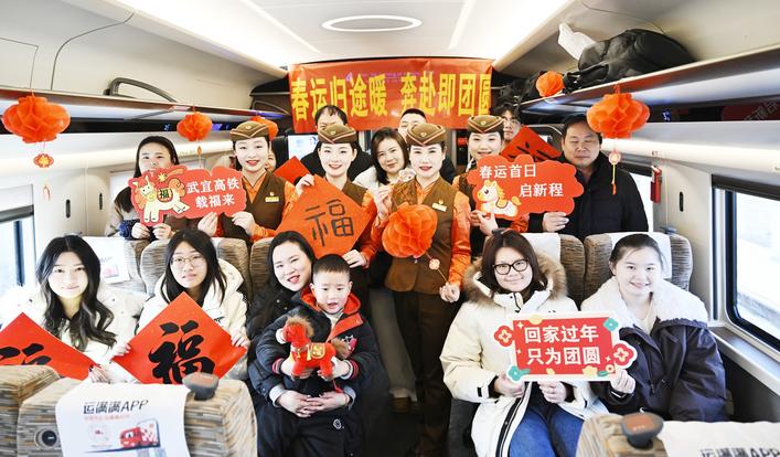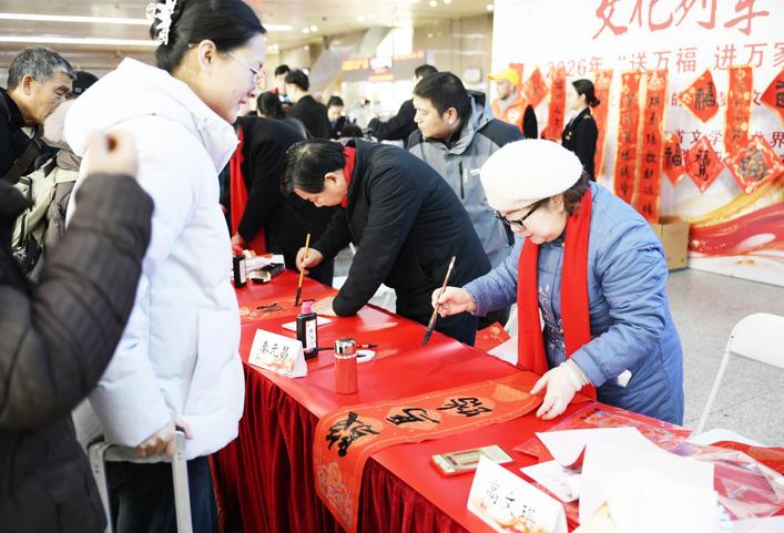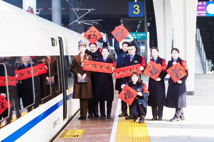 春运首日,中国铁路武汉局集团有限公司与湖北省文联共同组织开展了“文化列车千里行·送万福进万家”活动。活动覆盖湖北全省17个市州、河南省豫南4地市、武汉局管内26个高铁车站以及多趟旅客列车。通过沉浸式、互动式、多样化的文化盛宴,为2026年春节增添了温暖祥和的底色,让旅客带着满满的幸福感与归属感踏上团圆之路。
