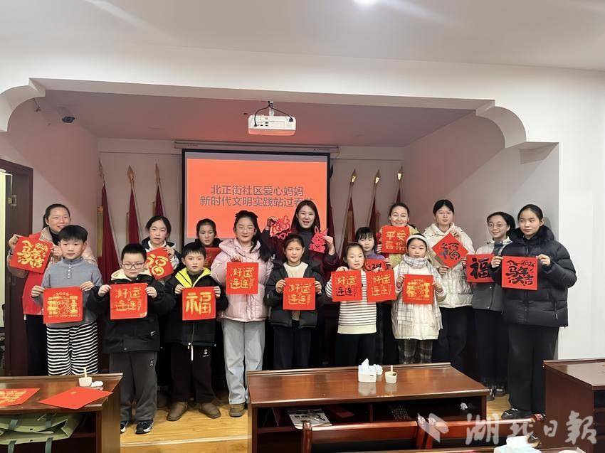 应山街道北正街社区新时代文明实践站化身“传统文化课堂”和“温暖驿站”,社区十余名留守儿童、困难儿童在志愿者陪伴下,剪窗花、拓福字、看电影,在传统年俗体验中共迎新春佳节。