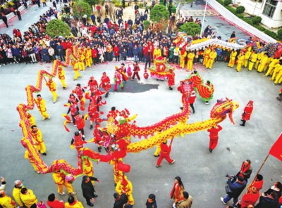 本次活动由8支国家级非遗三节龙队伍、1支高龙队伍领衔,联合采莲船、打连响、蚌王精、腰鼓队等特色方阵,组成近200人的非遗巡游队伍。巡游队伍在集镇社区穿梭游行,上演玩龙灯等传统民俗表演。所到之处,八条三节龙与13人高龙腾跃飞舞,锣鼓声震天响,鞭炮此起彼伏,人潮涌动,欢呼声不绝于耳。整场活动生动展现了非遗文化的独特魅力,为伍洛镇的马年新春增添了浓厚的喜庆氛围。