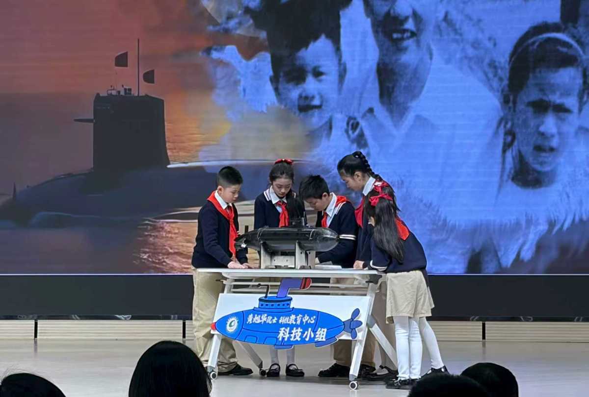 当天,以“致敬深潜元勋 点亮科技梦想”为主题的武昌区中山路小学科技月活动暨新学期科技教育工作部署会上,中山路小学的孩子们用身体模拟波浪、托举舰船前行,托举“舰船”破浪前行。从甲午海战的屈辱到福建舰的辉煌,一句“请党放心,强国有我”,让科学家精神跨越时空,直抵人心。