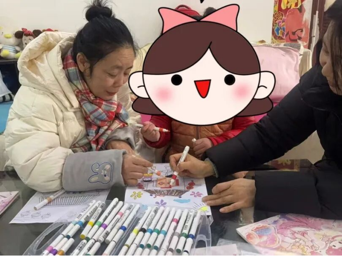 爱心妈妈刘女士很受触动,第二天和社区工作人员一起送去时,还多带了一本涂色本。她陪着小欣一起涂了一幅画:阳光、蓝天、小房子,院子里有小朋友在玩耍。