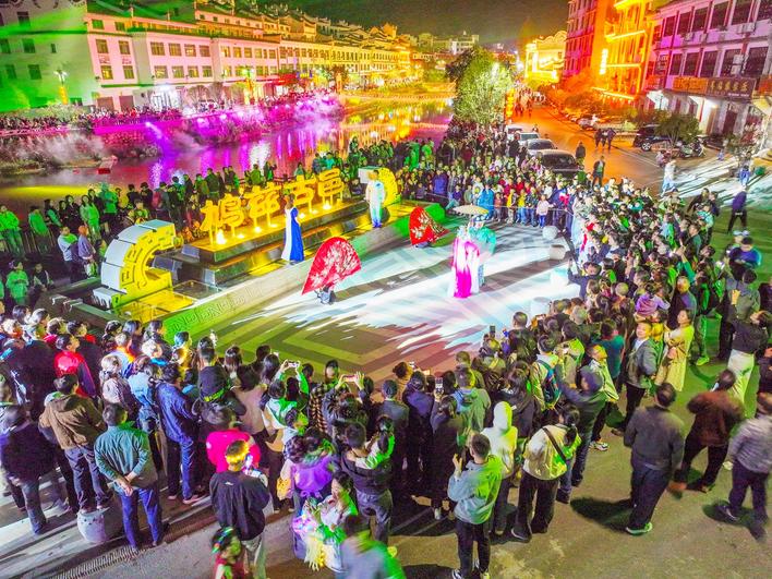 “白天逛药市、学地质,晚上看光影秀、听大别山的故事。”这正是度假区打造的"日游+夜演"模式——白天沉浸于自然与人文的体验,夜晚则被光影剧目拉入另一个时空。