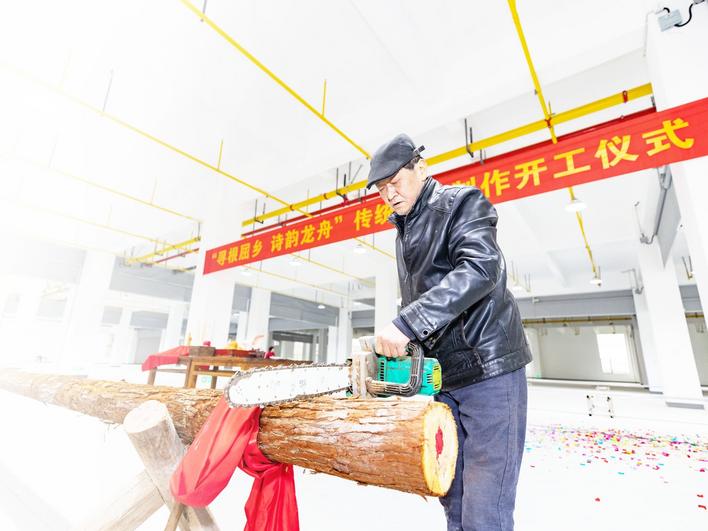 开工现场,国家级龙舟教练、宜昌市龙舟制作技艺非遗代表性传承人郑祥龙专注地加工着龙舟专用的龙骨。作为本次龙舟制作的“总掌墨人”,这位深耕行业数十年的“水木匠”,深谙传统工艺的精髓。