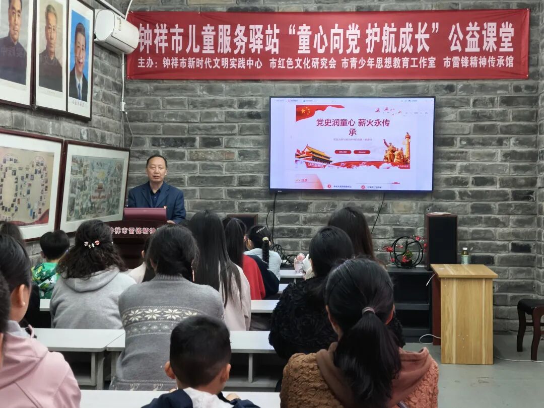 3月29日,钟祥市“党史润童心 薪火永传承”主题文明实践活动在雷锋精神传承馆举办。本次活动由市新时代文明实践中心、市关工委思想教育工作室、市红色文化研究会联合主办,“五老”宣讲员、非遗传承人、青少年代表及家长、志愿者参与活动。