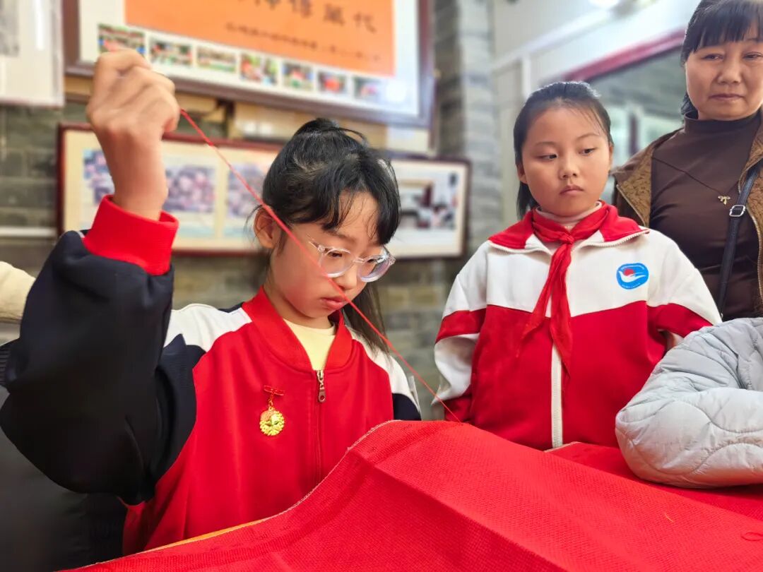 活动最后,学生代表杨妤诺分享感悟“以前看大哥哥大姐姐绣党旗,现在我可以自己绣党旗了,我觉得很光荣”。此次活动将党史学习与志愿服务培育相结合,厚植了青少年的家国情怀,深化了“小雷锋”种子工程。